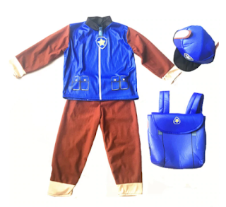 и две книжки: одна с рассказами о приключениях щенков, вторая — картонная книжка-паззл с героями мультфильма. В прошлом году любимым персонажем у сына была Скай и он, если помните, стремился носить все розовое. Но вот он повзрослел и решил быть, как отважный Гончик в синем. Сын очень обрадовался и тут же облачился в новый наряд.